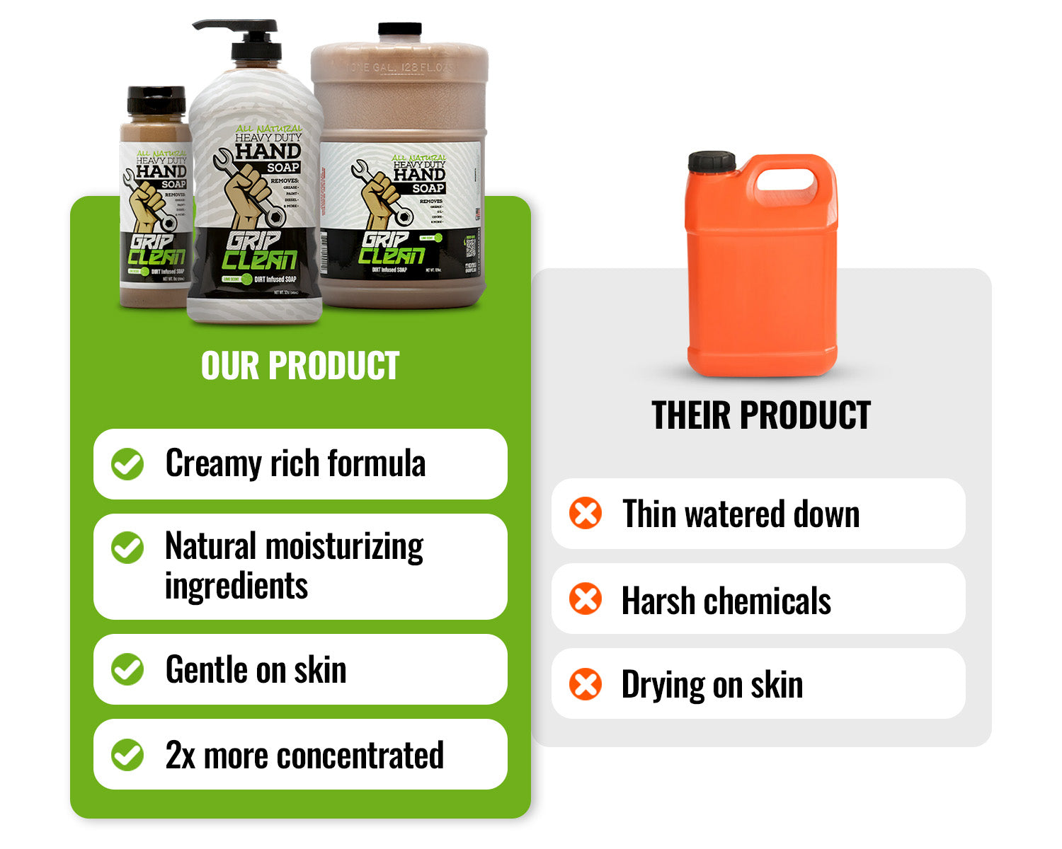 Let's face it, the orange cleaners have been around forever. This beats 'em all without drying your skin. No really, we guarantee it or we'll refund your money.