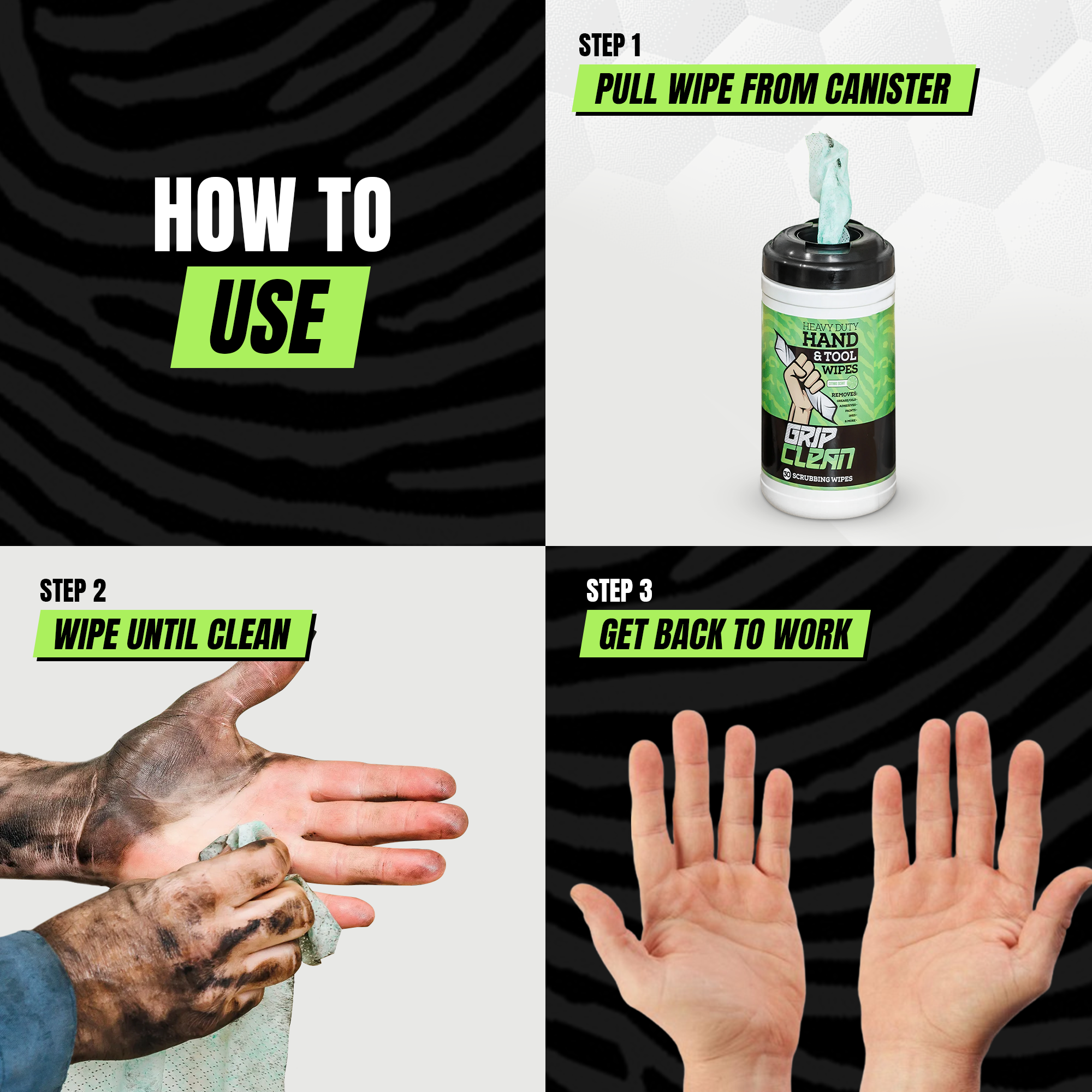 No water needed. These wipes are designed for instant, waterless cleaning anywhere — garages, vehicles, job sites, or on the go.