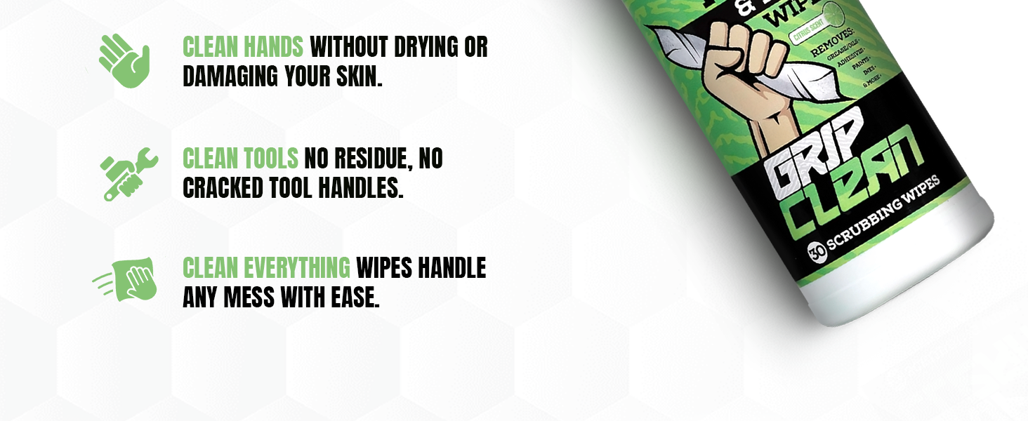 No. Grip Clean wipes are formulated to clean effectively without leaving your hands or tools feeling sticky or slimy.